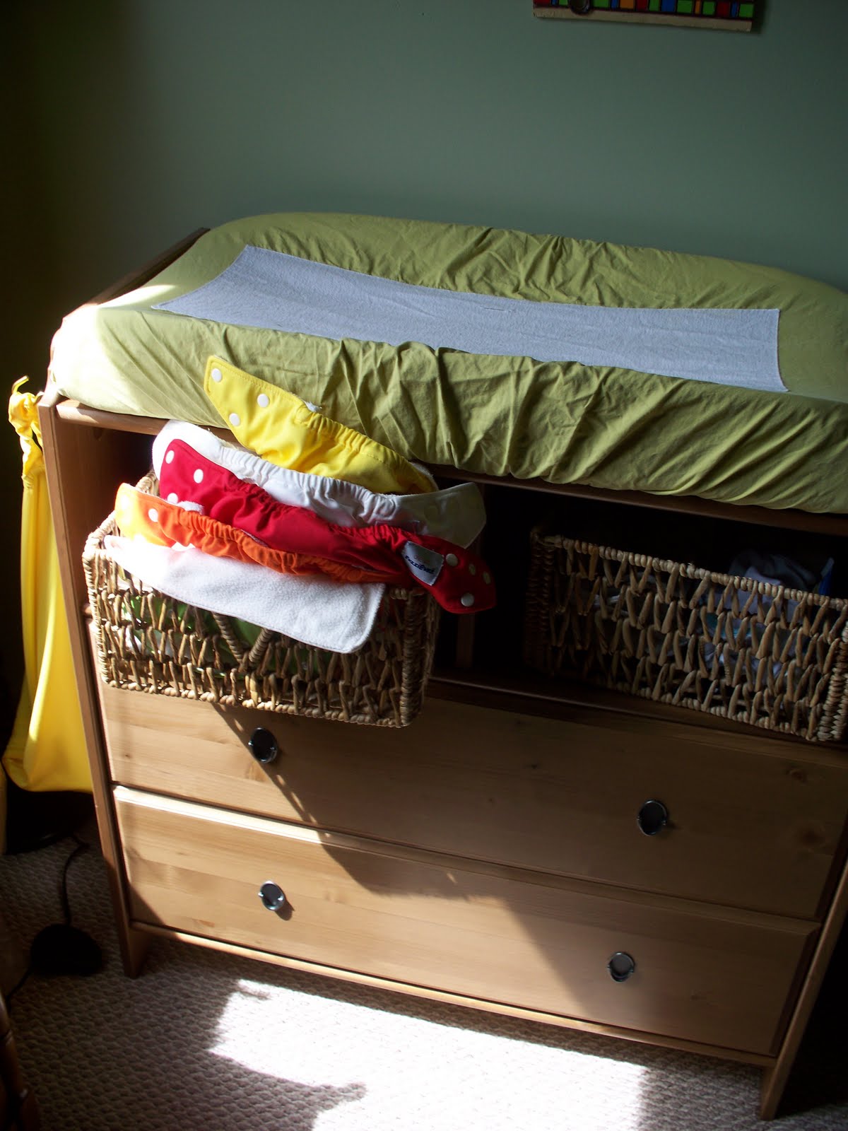 Love all the diapers on the clothes line! Now i'm curious, how do you handle the daycare situation? Does she just bag them up and send them home for you to deal with? Love Tulip's new patterned ones, super cute!